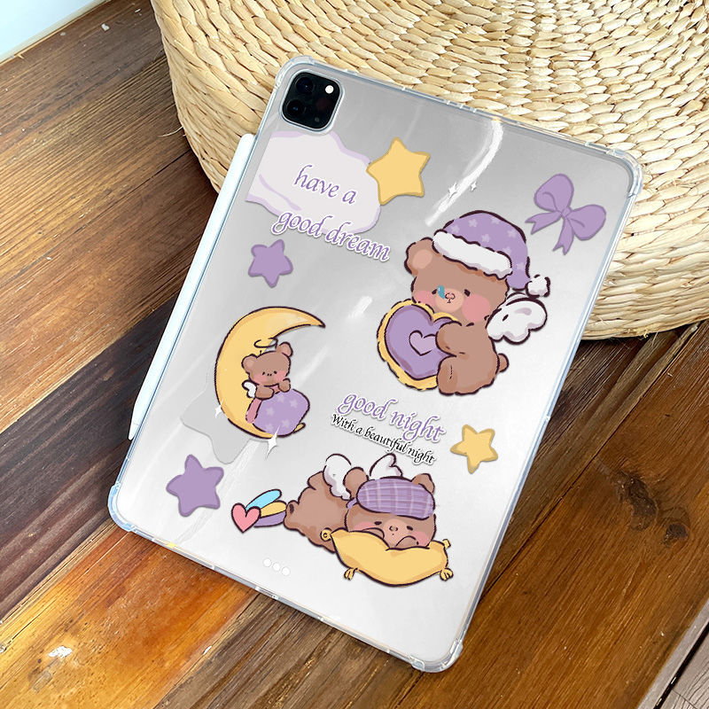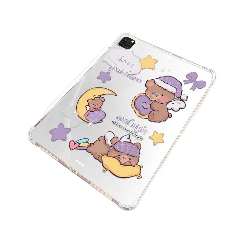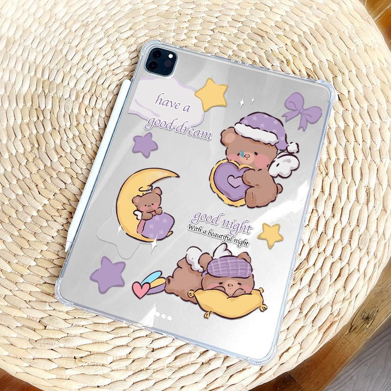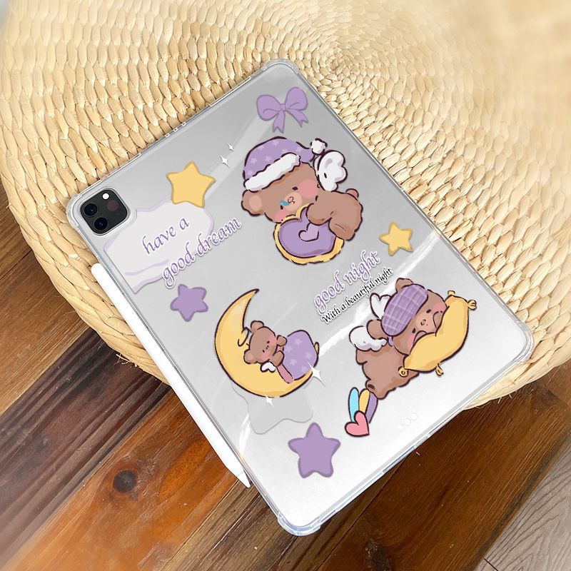 愛らしいくまのキャラクターが月や星と一緒に眠る癒しのデザインが魅力的なiPad Pro ケースです。