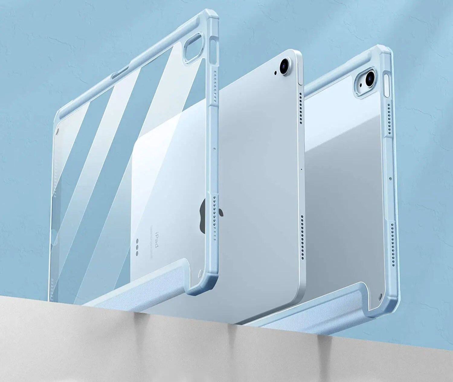 本体のデザインを活かせる透明背面が魅力のipadカバーです。